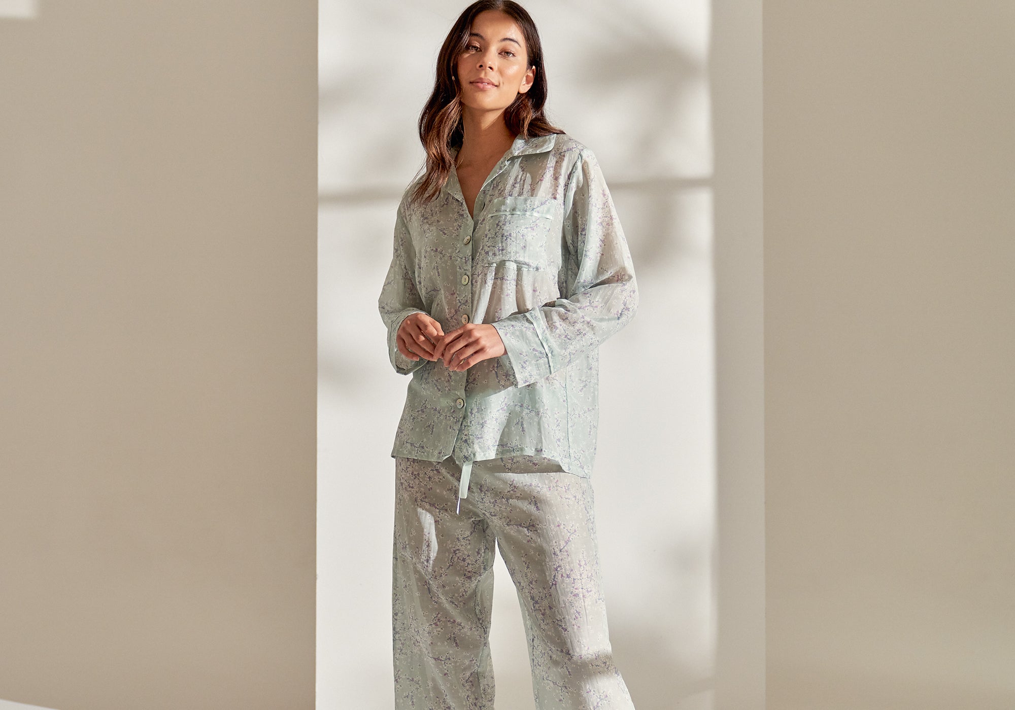 Delicate, lightweight, and sumptuously soft to the touch, our signature cotton silk collections are made from a luxe, all-natural fabric that’s as versatile as it is beautiful. We use cotton silk as the base cloth of choice for most of our prints, especially our spring/summer ranges due to its special natural features. It’s a dream to wear against your skin. A breathable fabric that allows for air circulation, its silk component makes it naturally thermo-regulating, meaning it can help to keep you warm or cool you down as needed, depending on the conditions. Renowned for its hypoallergenic qualities, it’s the perfect choice of fabric for those with asthma allergies or sensitive skin.