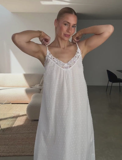 Breeze through summer in our effortless Maxi Nightie, crafted from signature Swiss Dot Cotton. Soft, breathable, and lightweight, it’s designed to keep you cool and comfortable on warm nights. An easy favourite you’ll wear all season long.